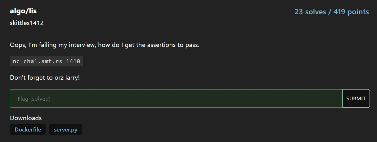 Yay! Good job, here's your flag and remember to orz larry: amateursCTF{orz-larry-how-is-larry-so-orz-5318bfae97e201a66dc12069058e1b11d971ac7b24a8c87b2aec826dd39098d4}