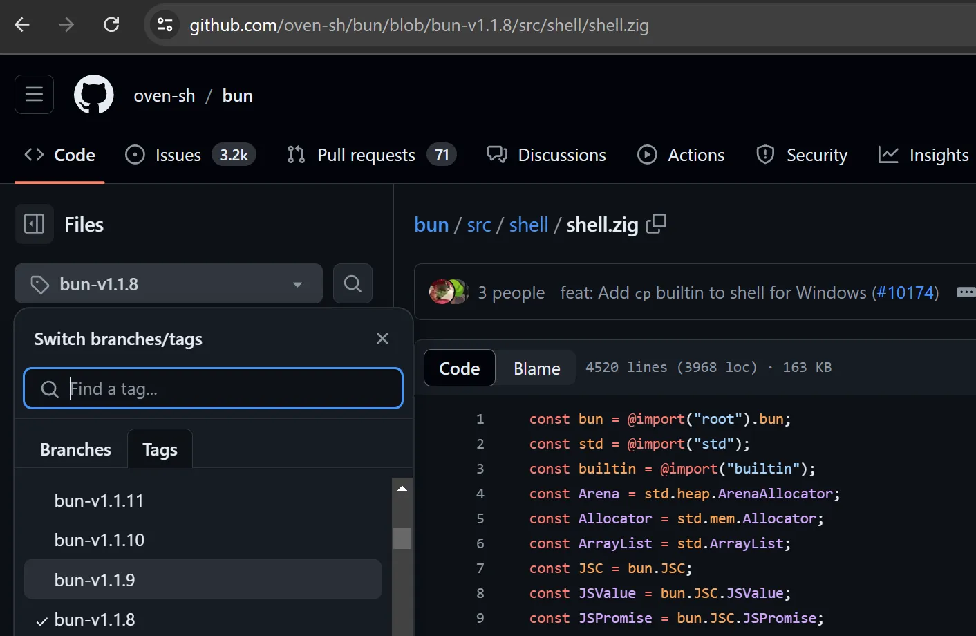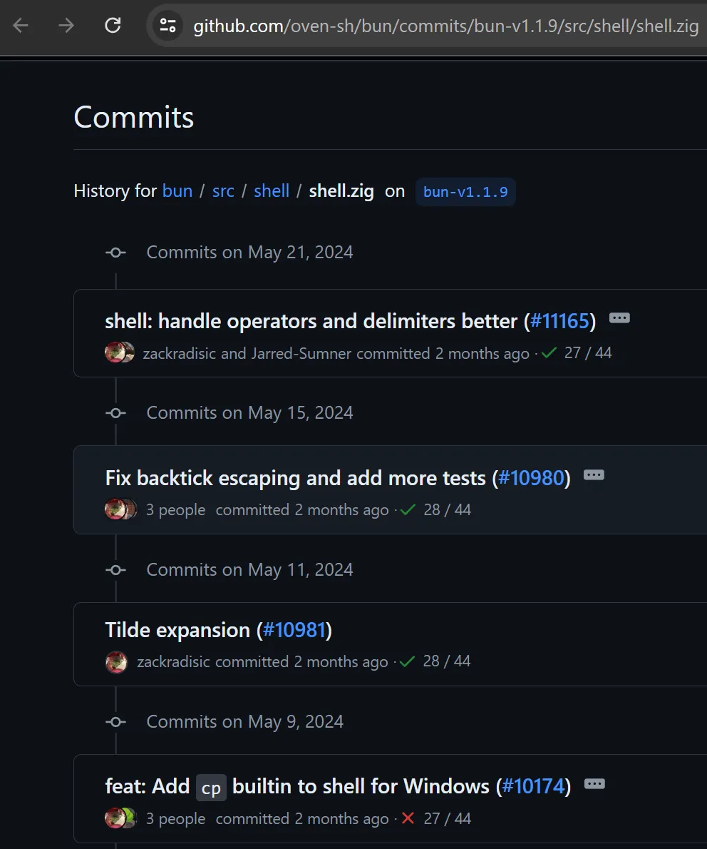 Fortunate for us, bun is open sourced. Let’s try to search for the source code of bun shell at the time of release 1.1.8: https://github.com/oven-sh/bun/tree/bun-v1.1.8