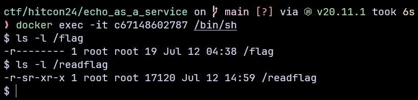 Unfortunately we don’t have permission to read from /flag directly. We’re forced to read it through /readflag instead